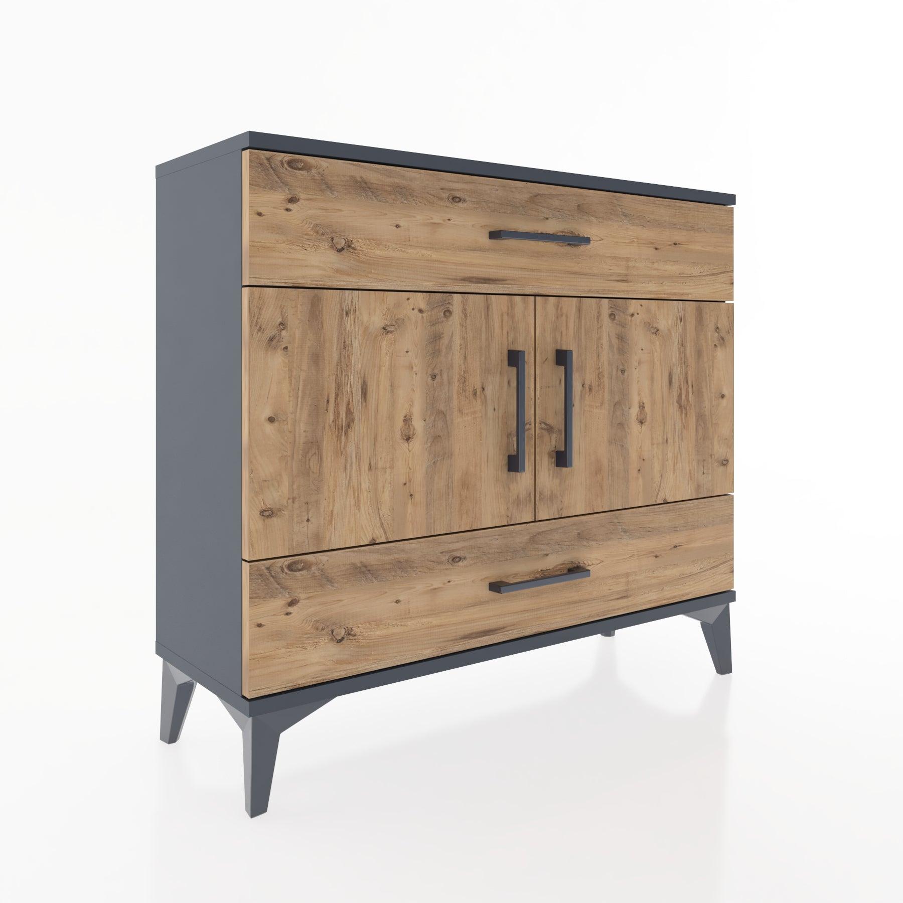 Woodntry Modüler Şifonyer Antrasit 88x30x68 cm Kapaklı ve Çekmeceli KC36-2