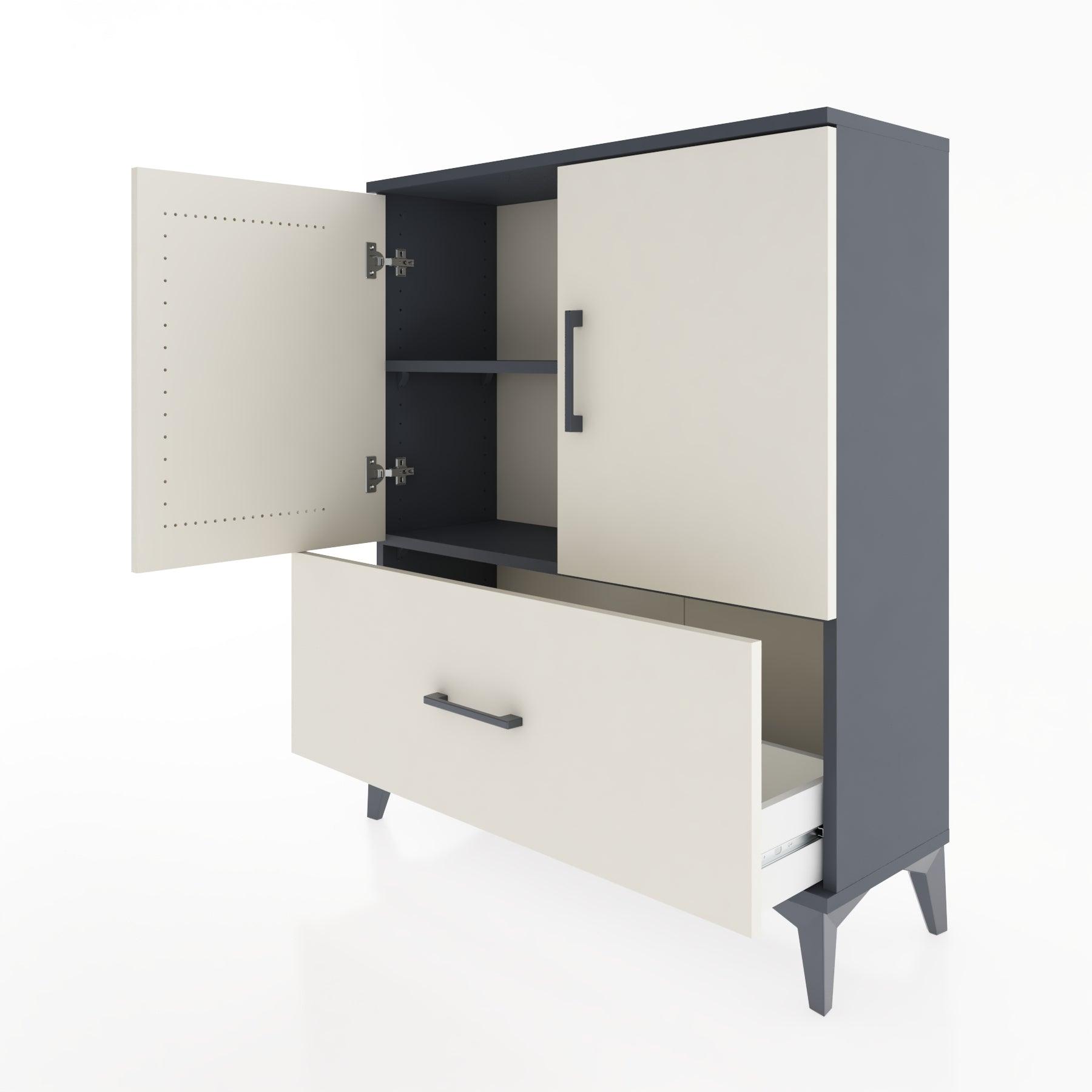 Woodntry Modüler Şifonyer Antrasit 88x30x94 cm Kapaklı ve Çekmeceli KC10-2