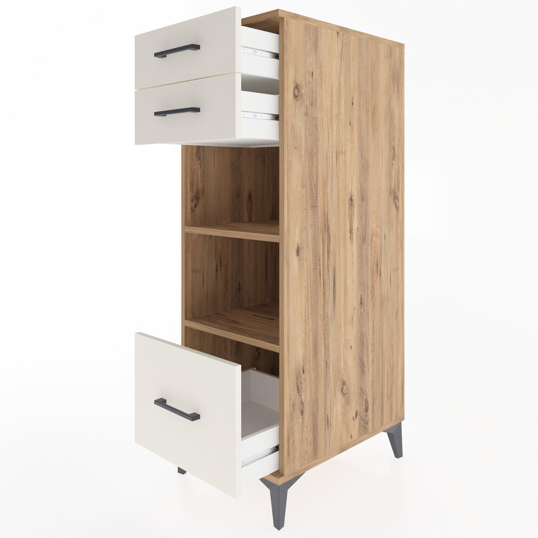 Woodntry Modüler Dolap Çam 44x30x122 cm Çekmeceli ve Raflı CR74-3