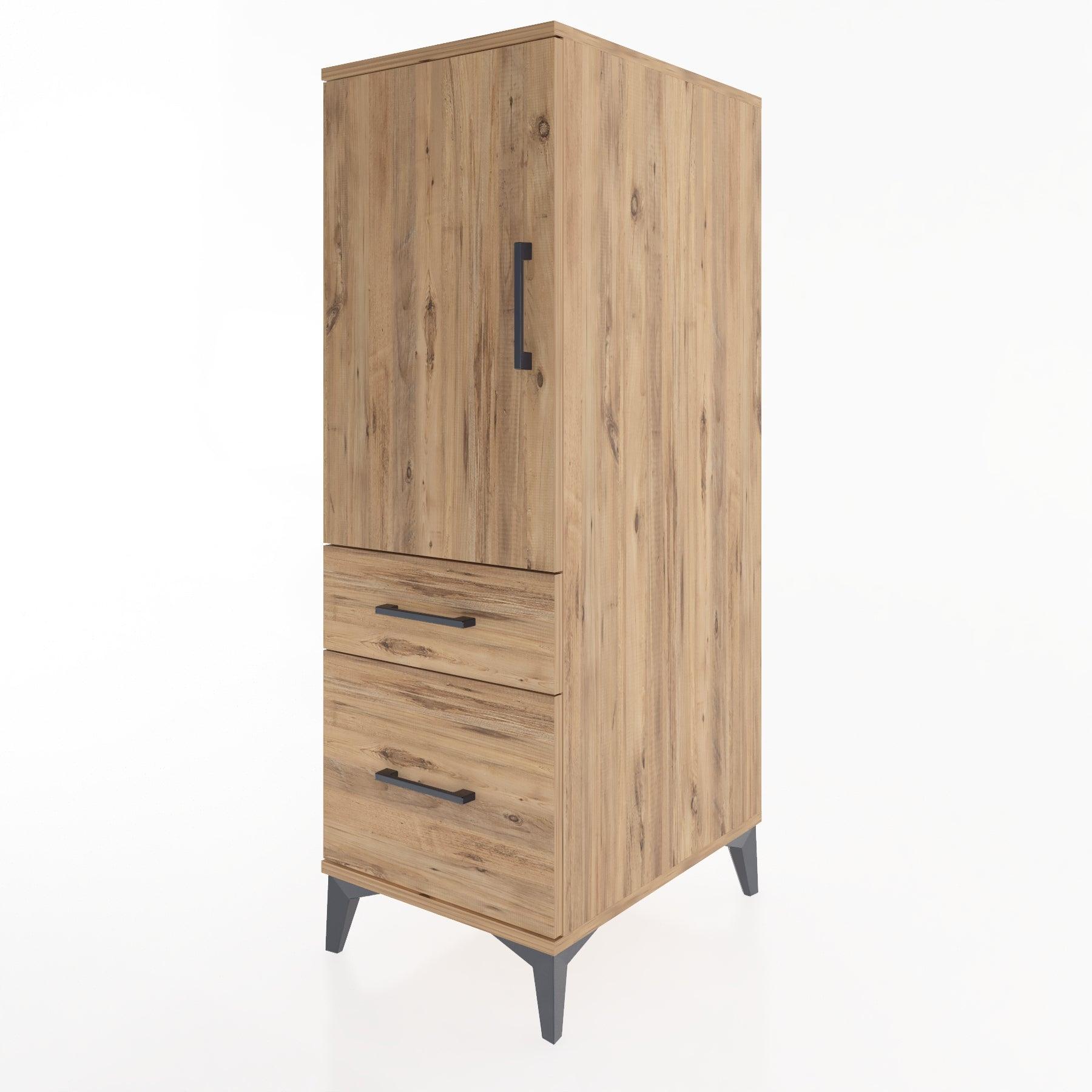Woodntry Modüler Dolap Çam 44x30x122 cm Kapaklı ve Çekmeceli KC105-3
