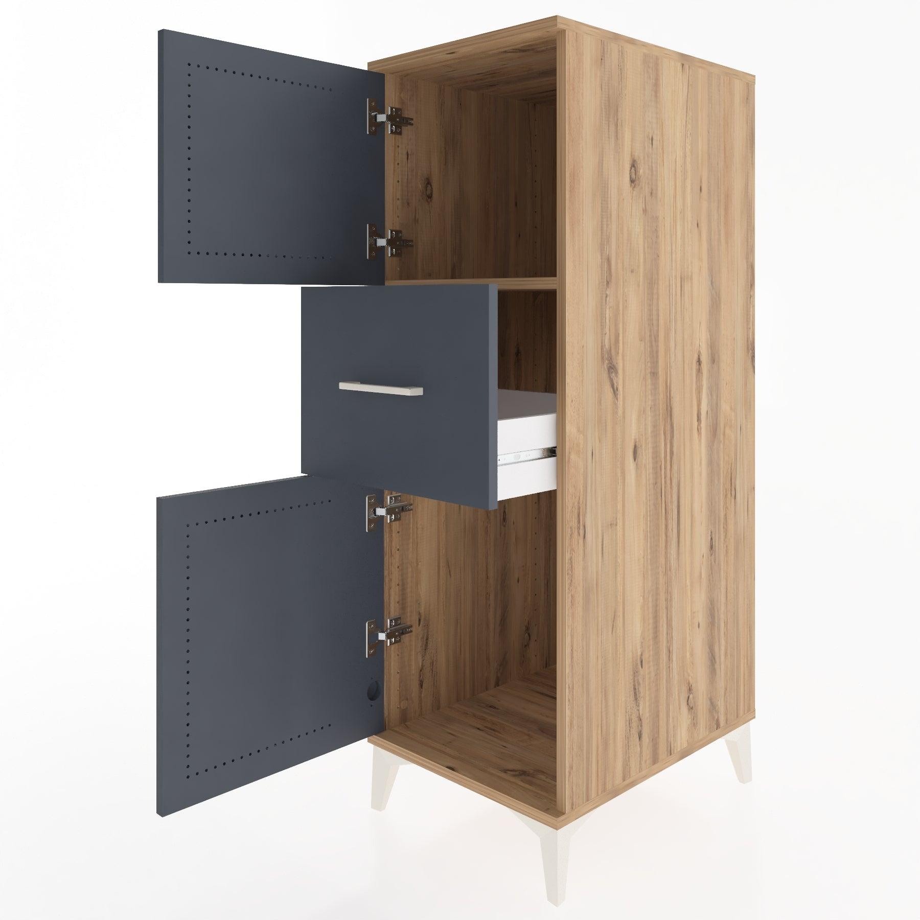 Woodntry Modüler Dolap Çam 44x59x122 cm Kapaklı ve Çekmeceli KC3-3